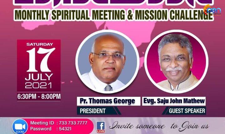 മെൽബൺ: ഐ.പി.സി ഓസ്ട്രേലിയ റീജിയന്റെ ജൂലൈ മാസത്തെ മാസയോഗവും മിഷൻ ചലഞ്ചും ജൂലൈ 17 ശനിയാഴ്ച്ച (17-7- 2021) വൈകിട്ട് 6.30 മുതൽ 8.00 വരെ (സിഡ്നി- മെൽബൺ സമയം) ‘സൂം’ പ്ലാറ്റ് ഫോമിലൂടെ നടത്തപ്പെടുന്നു.