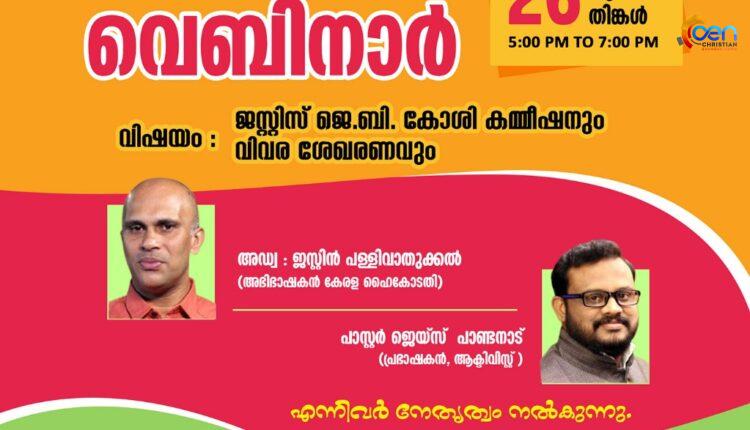 ജസ്റ്റീസ് ജെ ബി കോശി കമ്മീഷൻ വെബിനാർ ജൂലൈ 26 ന്