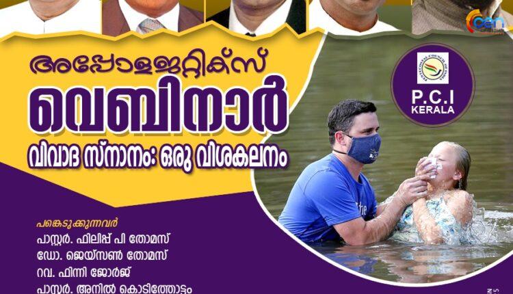വിവാദ സ്നാനം: ഒരു വിശകലനം, പിസിഐ കേരളാ അപ്പോളജറ്റിക്സ് വെബിനാർ ആഗസ്റ്റ് 5 ന്