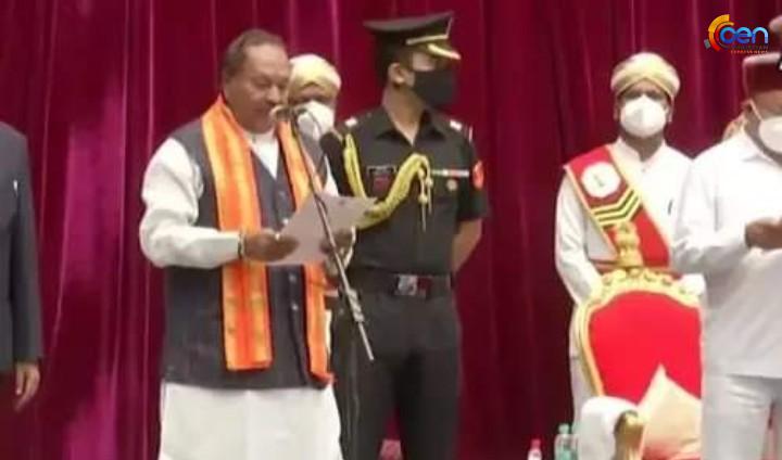 കര്ണാടകയില് ഗോമൂത്രത്തിന്റെ പേരിലും സത്യപ്രതിജ്ഞ. യെദ്യൂരപ്പ രാജിവെച്ചതിന് പിന്നാലെ പുതിയതായി നിലവില് വന്ന സര്ക്കാരിലെ മന്ത്രിമാരാണ് ഗോമൂത്രത്തിന്റെയും കര്ഷകരുടേയും നാമത്തില് സത്യപ്രതിജ്ഞ ചെയ്ത് അധികാരമേറ്റത്. മൃഗസംരക്ഷണ വകുപ്പd മുന്മന്ത്രി പ്രഭു ചൗഹാനാണ് ഗോമൂത്ര നാമത്തില് സത്യപ്രതിജ്ഞ ചെയ്തത്. ബസവരാജ് ബൊമ്മെ മന്ത്രിസഭയിലെ 29 മന്ത്രിമാരാണ് ഇന്ന് സത്യപ്രതിജ്ഞ ചൊല്ലി അധികാരമേറ്റത്.