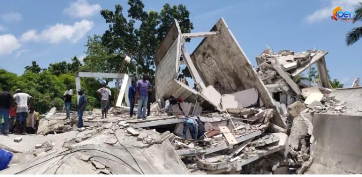 ഹെയ്തിയുടെ തലസ്ഥാനമായ പോര്ട്ട്-ഓ-പ്രിന്സില് നിന്ന് ഏകദേശം 160 കിലോമീറ്റര് അകലെയാണ് ഭൂകമ്പത്തിന്റെ പ്രഭവകേന്ദ്രം. എട്ട് കിലോമീറ്റിര് ചുറ്റളവില് ഏഴ് തുടര്ചലനങ്ങളാണ് ഉണ്ടായത്. നിരവധി നാശനഷ്ടങ്ങളാണ് ഹെയ്തിയില് നിന്ന് റിപ്പോര്ട്ട് ചെയ്യുന്നുത്. പള്ളികളും ഹോട്ടലുകളുമടക്കം ഒട്ടേറെ കെട്ടിടങ്ങള് ഭൂചലനതത്തില് തകര്ന്നു.