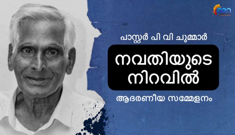 പാസ്റ്റർ പി. വി. ചുമ്മാർ നവതിയുടെ നിറവിൽ, ആദരണീയ സമ്മേളനം ഇന്ന്
