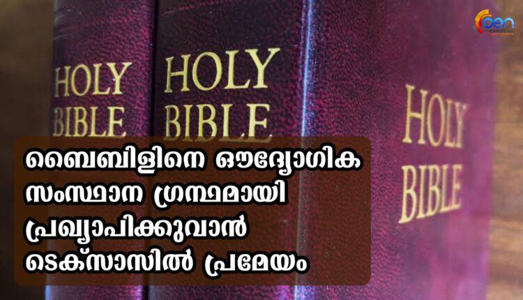 ബൈബിളിനെ ഔദ്യോഗിക സംസ്ഥാന ഗ്രന്ഥമായി പ്രഖ്യാപിക്കുവാന് ടെക്സാസിൽ പ്രമേയം