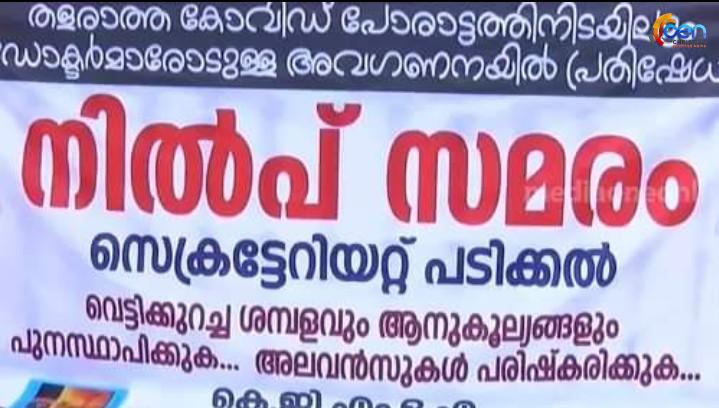 ശമ്പളവും ആനുകൂല്യങ്ങളും വെട്ടിക്കുറച്ചതിനെതിരെ സമരം ചെയ്യുന്ന ഡോക്ടർമാരെ സർക്കാർ ചർച്ചയ്ക്ക് വിളിച്ചു. ഉച്ചയ്ക്ക് 12 മണിക്കാണ് ആരോഗ്യ മന്ത്രിയുമായുള്ള ചർച്ച.സെക്രട്ടേറിയറ്റിന് മുന്നിൽ ഡോക്ടമാർ നിൽപ്പ് സമരം നടത്തുകയാണ്.