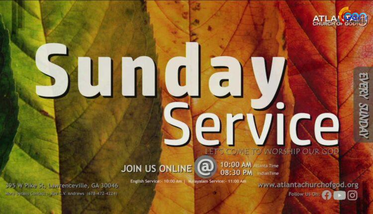 Sunday Service | 11/07/2021 | 10:00 AM Atlanta Time | 8:30 PM Indian Time | English Service:- 10:00 Am | Malayalam Service:- 11:00 Am