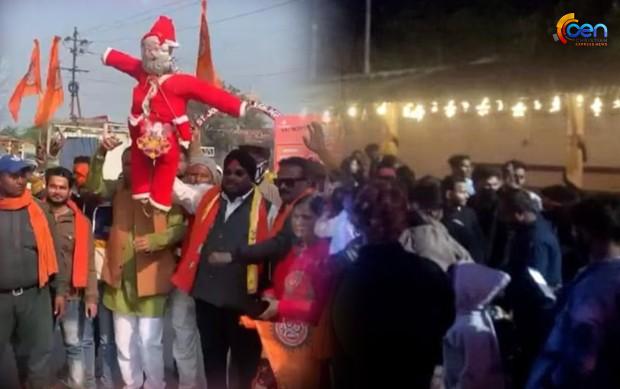 “സാന്താക്ലോസ് ഹിന്ദുക്കളെ മതം മാറ്റാനുള്ള മിഷ്ണറിമാരുടെ അടവ്”: കോലം കത്തിച്ചും ജയ് ശ്രീറാം വിളിച്ചും ഹിന്ദുത്വവാദികള്