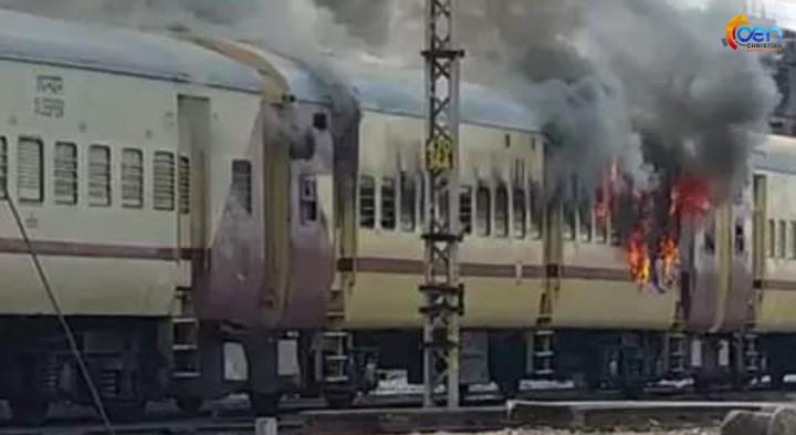 ബിഹാറില് ഉദ്യോഗാര്ഥികള് അക്രമാസക്തരായി; ട്രെയിനിന് തീയിട്ടു