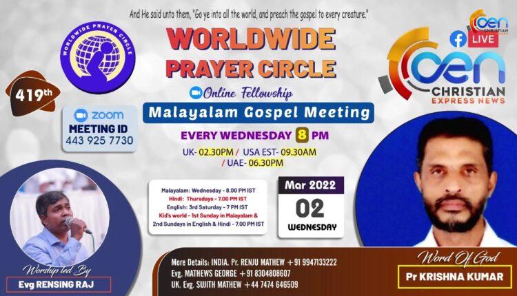 419th Online Fellowship | Worldwide Prayer Circle | Worship: Evg Rensing Raj | Message: Pr Krishna Kumar