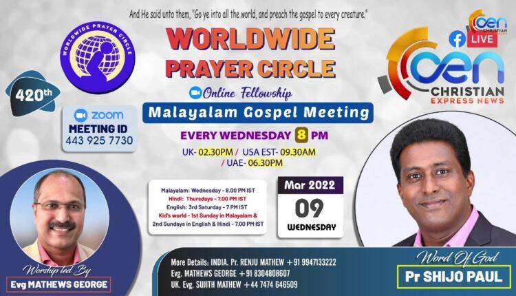 420th Online Fellowship | Worldwide Prayer Circle | Worship: Evg Mathews George | Message: Pr Shijo Paul