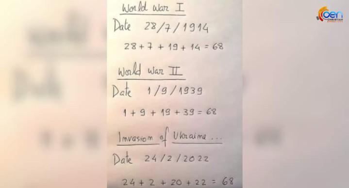യുദ്ധങ്ങൾ എന്നും ബാക്കിവെച്ചത് ദുരിതങ്ങൾ മാത്രമാണ്. യുക്രൈനിൽ നിന്നുള്ള കാഴ്ചകൾ നോക്കു. ഒരു രാജ്യവും ജനതയും തകർന്നില്ലാതാകുന്ന ഹൃദയഭേദകമായ രംഗങ്ങൾ. വേദനയുടെയും കണ്ണീരിന്റെയും ഭയാനകമായ നിമിഷങ്ങളിലൂടെയാണ് കഴിഞ്ഞ കുറച്ച് ദിവസങ്ങൾ അവർ കടന്നുപോയത്. റഷ്യൻ സൈന്യം വീണ്ടും ശക്തമായാണ് യുക്രൈനിനെ ആക്രമിക്കുന്നത്. നിരവധി യുക്രൈനിയൻ പൗരന്മാർ ജീവൻ രക്ഷിക്കാനായി നഗരത്തിന്റെ തെരുവുകളിൽ ഒളിച്ചിരിക്കുന്നുണ്ട്. ചിലർ മെട്രോ സ്റ്റേഷനുകളിലും ചിലർ ബേസ്മെന്റുകളിലുമെല്ലാം അഭയം പ്രാപിച്ചിരിക്കുകയാണ്. ലോകമഹായുദ്ധങ്ങൾക്ക് സമമാണ് റഷ്യ-യുക്രെയ്ൻ യുദ്ധമെന്നാണ് വിദഗ്ദർ അഭിപ്രായപെടുന്നത്. ലോക മഹാ യുദ്ധങ്ങളും യുക്രെയ്നിൽ നടക്കുന്ന യുദ്ധവും തമ്മിൽ വിചിത്രമായൊരു സാമ്യം കണ്ടെത്തിയിരിക്കുന്നതാണ് ഇപ്പോൾ ശ്രദ്ധനേടുന്നത്. പാട്രിക് ബെറ്റ് ഡേവിഡ് എന്ന ലോകപ്രശസ്ത വ്യവസായിയാണ് ഈ കണ്ടുപിടുത്തം നടത്തിയിരിക്കുന്നത്. ഡേവിഡിന്റെ വിചിത്രമായ കണ്ടുപിടുത്തം സോഷ്യൽ മീഡിയയിൽ ശ്രദ്ധ നേടിയിരിക്കുകയാണ്. അദ്ദേഹത്തിന്റെ ട്വിറ്റർ അക്കൗണ്ടിലാണ് ഇത് പങ്കുവെച്ചിരിക്കുന്നത്. നാല് വർഷത്തിലേറെ നീണ്ടുനിന്ന യൂറോപ്പ് കേന്ദ്രമാക്കി നടന്ന യുദ്ധമാണ് ഒന്നാം ലോക മഹായുദ്ധം. 1914 ജൂലൈ 28 ആരംഭിച്ച യുദ്ധം നീണ്ടുനിന്നത് 1918 നവംബർ 11 വരെയാണ്. അതായത് 28-06-1914 നാണ് യുദ്ധം ആരംഭിക്കുന്നത്. ഈ തീയതിയെ 28, 7, 19, 14 എന്നിങ്ങനെ വിഭജിച്ച് തമ്മിൽ കൂട്ടിയാൽ കിട്ടുന്ന സഖ്യ 68 ആണ്.