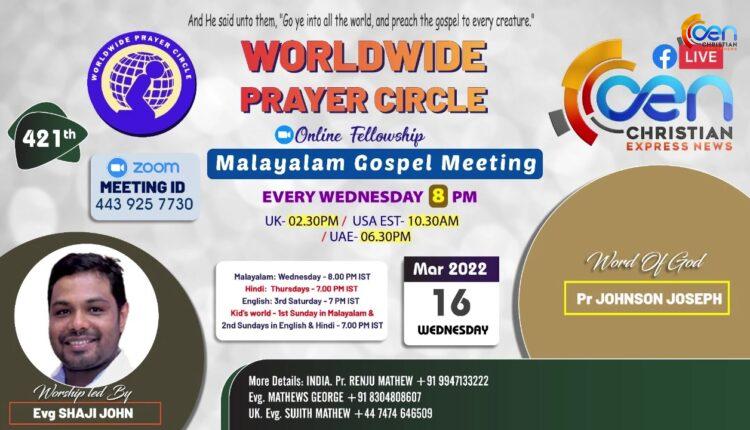 421th Online Fellowship | Worldwide Prayer Circle | Worship: Evg Shaji John | Message: Pr Johnson Joseph