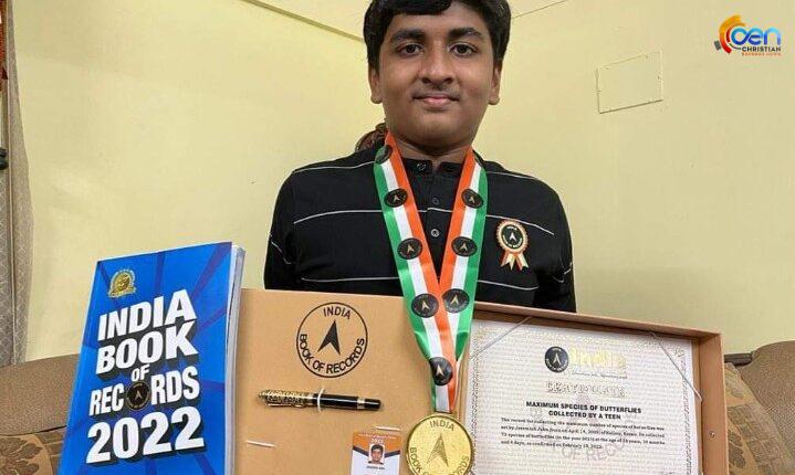കൊട്ടാരക്കര : എൽ ഷദായി മിനിസ്ട്രി സീനിയർ പാസ്റ്റർ ടിനു ജോർജിന്റെ മകൻ ജെറെമിയ ജോൺ ഇന്ത്യ ബുക്ക് ഓഫ് റെക്കോഡിൽ ഇടം നേടി. ഏറ്റവും കൂടുതൽ വിവിധ ഗണത്തിൽ പെട്ട ചിത്രശലഭങ്ങളുടെ ശേഖരത്തിനാണ് ഈ റെക്കോർഡ് നേട്ടം. 73 തരം ഗണത്തിൽ പെട്ട ചിത്രശലഭങ്ങളുടെ ശേഖരം സ്വന്തമായി ഉണ്ടാക്കിയ ഈ 13 വയസുകാരൻ കൊട്ടാരക്കര എം. ജി. എം. റെസിഡെൻഷൽ പബ്ലിക് സ്കൂൾ 8- ക്ലാസ്സ് വിദ്യാർത്ഥിയാണ്. ആത്മീയ പ്രവർത്തനത്തിലും സജീവമായ ഈ കൊച്ചുമിടുക്കന്റെ സഹോദരൻ നെഹെമ്യയും മാതാവ് ജീന ജോണും ആണ്.