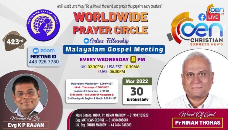 423RD Online Fellowship | Worldwide Prayer Circle | Worship: Evg K P Rajan | Message: Pr Ninan Thomas