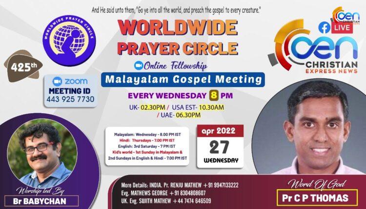 Live 425TH Online Fellowship | Worldwide Prayer Circle On Apr 27, 2022 0 Share Share this on WhatsApp425TH Online Fellowship | Worldwide Prayer Circle | Worship: Br Babychan | Message: Pr C P Thomas Share this on WhatsApp Continue Reading 0 Share WhatsAppFacebookTwitterViberPinterestEmail