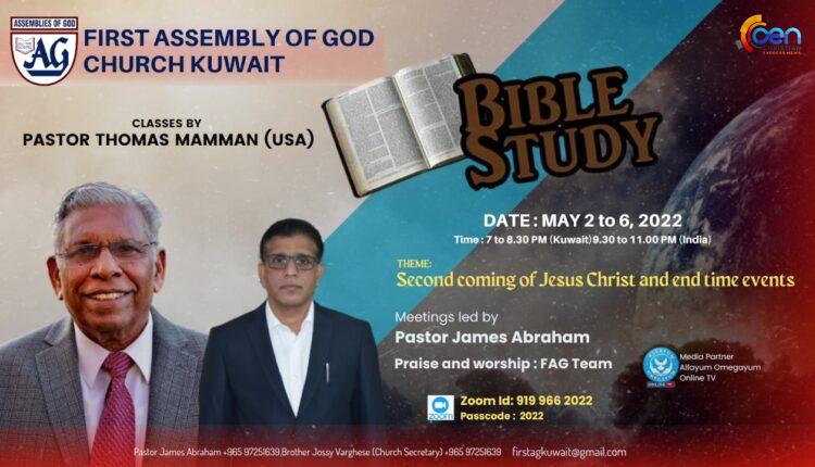 First Assembly of God Church Kuwait BIBLE STUDY 2022 DAY 1. Classes by Pastor Thomas Mamman (USA)