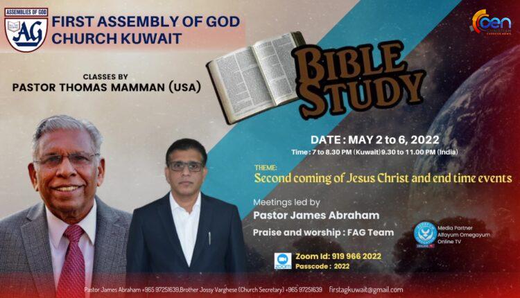 First Assembly of God Church Kuwait BIBLE STUDY 2022 – DAY 3. Classes by Pastor Thomas Mamman (USA). Meeting led by Pastor James Abraham