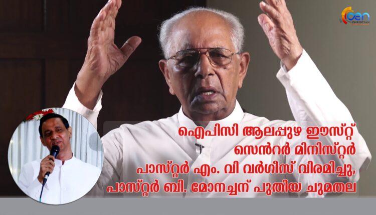 ഐപിസി ആലപ്പുഴ ഈസ്റ്റ് സെൻറർ മിനിസ്റ്റർ പാസ്റ്റർ എം. വി വർഗീസ് വിരമിച്ചു, പാസ്റ്റർ ബി. മോനച്ചന് പുതിയ ചുമതല