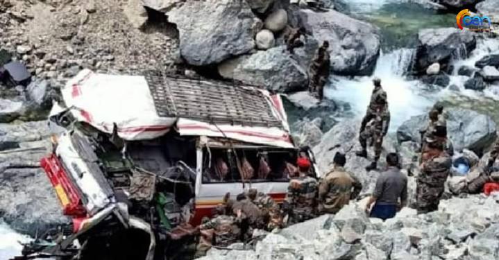 ലഡാക്കിൽ സൈനിക വാഹനം നദിയിൽ വീണ് ഏഴ് സൈനികർ മരിച്ച സംഭവത്തിൽ അനുശോചനം രേഖപ്പെടുത്തി കരസേനയുടെ നോർത്തേൺ കമാൻഡ്. മരിച്ച സൈനികരുടെ പേരുവിവരങ്ങൾ കരസേന പുറത്തുവിട്ടു. മലയാളിയായ ലാൻസ് ഹവിൽദാർ മുഹമ്മദ് സൈജൽ അടക്കമുള്ളവരാണ് ഇന്നലെ ലഡാക്കിലെ തുർതുക് മേഖലയിലുണ്ടായ അപകടത്തിൽ മരിച്ചത്. അതേസമയം, പരുക്കേറ്റ 19 സൈനികർ ഹരിയാന പഞ്ച്കുലയിലെ കരസേനാ ആശുപത്രിയിൽ ചികിത്സയിലാണ്. മലപ്പുറം പരപ്പനങ്ങാട് സ്വദേശി ലാൻസ് ഹവിൽദാർ മുഹമ്മദ് സൈജൽ, സുബേദാർ ഷിൻഡെ വിജയ് റാവു സർജേറാവു, നായിബ് സുബേദാർ ഗുരുദയാൽ സാഹു, നായിക് സന്ദീപ് കുമാർ പാൽ, നായിക് ജാദവ് പ്രശാന്ത് ശിവജി, നായിക് രാമാനുജ് കുമാർ, ലാൻസ് നായിക് ബപ്പാദിത്യ ഖുട്ടിയ എന്നിവരാണ് മരിച്ചത്. സംഭവത്തിൽ കരസേനയുടെ നോർത്തേൺ കമാൻഡ് അനുശോചനം രേഖപ്പെടുത്തി. പരുക്കേറ്റവർക്ക് വേഗം ഭേദമാകട്ടെയെന്ന് പ്രാർത്ഥിക്കുന്നതായും കരസേന വ്യക്തമാക്കി. പരുക്കേറ്റ സൈനികർക്ക് സാധ്യമായ എല്ലാ സഹായവും കരസേന നൽകുന്നുവെന്ന് പ്രതിരോധ മന്ത്രി രാജ്നാഥ് സിംഗ് ഇന്നലെ വ്യക്തമാക്കിയിരുന്നു. പരുക്കേറ്റ 19 സൈനികർ ഹരിയാന പഞ്ച്കുലയിലെ കരസേനാ ആശുപത്രിയിൽ ചികിത്സയിലാണ്.