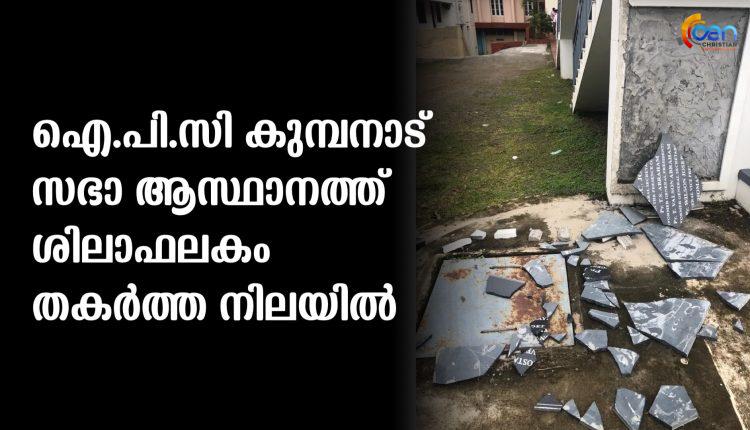 ഐ.പി.സി കുമ്പനാട് സഭാ ആസ്ഥാനത്ത് ശിലാഫലകം തകർത്ത നിലയിൽ