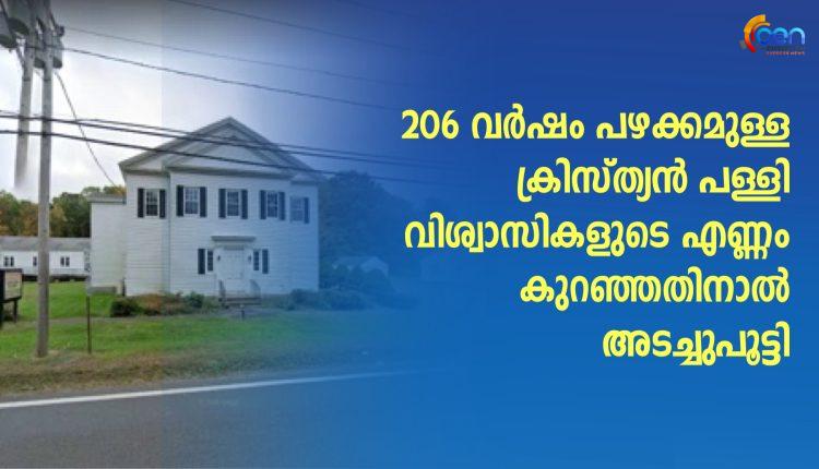 206 വർഷം പഴക്കമുള്ള പള്ളി വിശ്വാസികളുടെ എണ്ണം കുറഞ്ഞതിനാൽ അടച്ചുപൂട്ടി