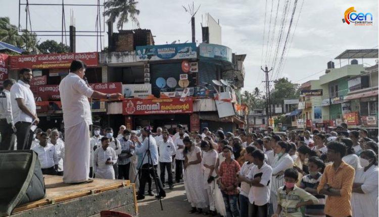 കാഞ്ഞിരംകുളം ജംഗഷനിൽ ക്രൈസ്തവർ തെരുവിൽ ഇറങ്ങി പ്രതിക്ഷേധിച്ചു