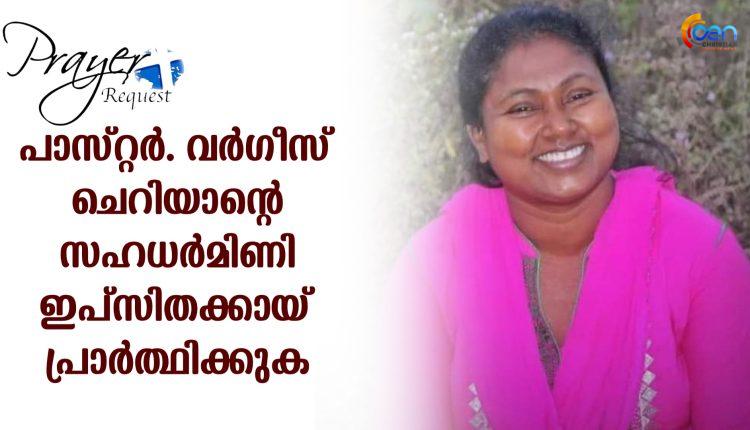 പാസ്റ്റർ. വർഗീസ് ചെറിയാന്റെ സഹധർമിണി സിസ്റ്റർ. ഇപ്സിതയ്ക്കായ് പ്രാർത്ഥിക്കുക