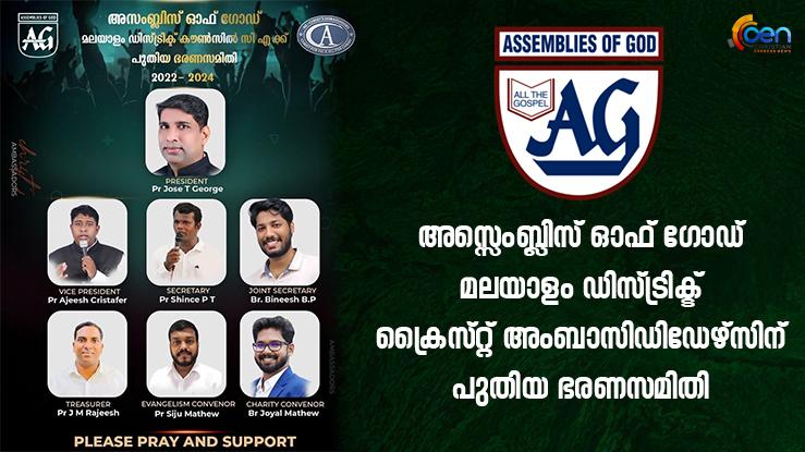 അസ്സെംബ്ലിസ് ഓഫ് ഗോഡ് മലയാളം ഡിസ്ട്രിക്ട് ക്രൈസ്റ്റ് അംബാസിഡിഡേഴ്സിന് പുതിയ ഭരണസമിതി