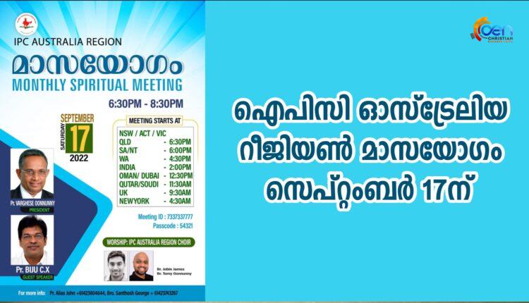 ഐപിസി ഓസ്ട്രേലിയ റീജിയൺ മാസയോഗം സെപ്റ്റംബർ 17ന്