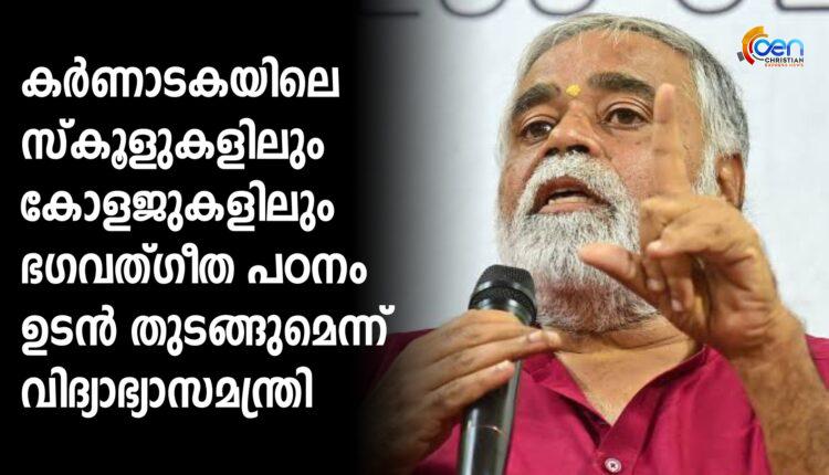 കർണാടകയിലെ സ്കൂളുകളിലും കോളജുകളിലും ഭഗവത്ഗീത പഠനം ഉടൻ തുടങ്ങുമെന്ന് വിദ്യാഭ്യാസമന്ത്രി