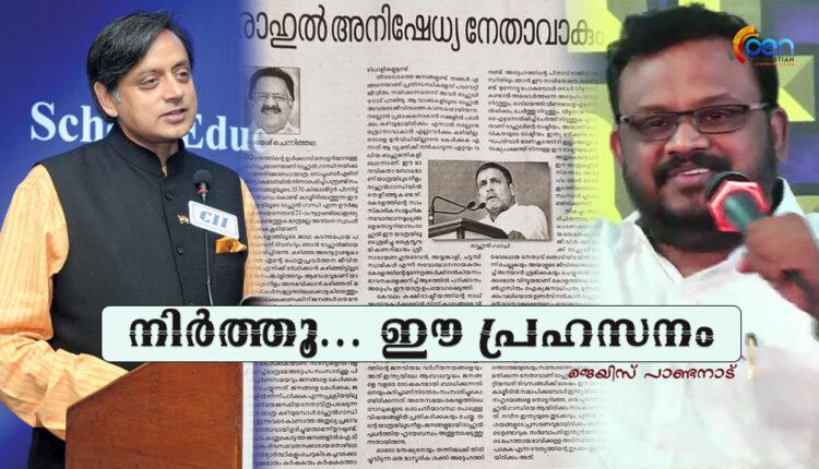 ശിവലിംഗത്തിൽ ഇരിക്കുന്ന തേളാണ് മോദി എന്ന് പറഞ്ഞ ഒരു നേതാവും ഇന്ന് ഇന്ത്യയിൽ ഇല്ല. മോദി, അമിത് ഷാ, യോഗി ത്രയങ്ങളോട് പാർലിമെൻ്റിലും പുറത്തും സംവദിക്കാൻ കഴിയുന്ന ഏകയാൾ. അത് ഡോ.തരൂർജി മാത്രമാണ്. സുനന്ദ പുഷ്കർ കേസ് അതിൻ്റെ ക്ലൈമാക്സിൽ എത്തിയപ്പോഴും കോമ്പ്രമൈസിന് തയ്യാറാകാത്ത ധീരൻ.