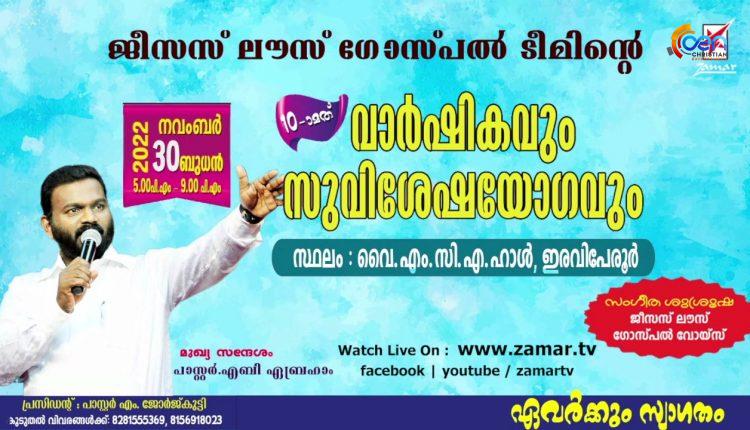 Pr.Aby Abraham | Jesus Loves Gospel Team 10 മത് വാർഷിക കൺവൻഷൻ | YMCA Eraviperoor | Watch Live On Zamar TV
