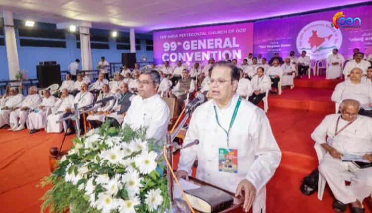 കുമ്പനാട്: ഇന്ത്യാ പെന്തെക്കോസ്തു ദൈവ സഭയുടെ 99-ാമത് ജനറൽ കൺവൻഷൻ ആരംഭിച്ചു. ശതാബ്ദിയുടെ പടിവാതിക്കലേക്ക് എത്തി നില്ക്കുന്ന ഇന്ത്യാ പെന്തെക്കോ സ്തു ദൈവ സഭ പുതിയ ദിശാബോധത്തോടെ ദൈവരാജ്യ വ്യാപനത്തിനായി പ്രവർത്തിക്കണമെന്ന് ഐ പി സി ജനറൽ പ്രസിഡന്റ് ഡോ.ടി. വൽസൻ എബ്രഹാം ഉദ്ഘാടനം ചെയ്തു സംസാരാരിക്കവേ ആഹ്വാനം ചെയ്തു. കഴിഞ്ഞ നാലു തലമുറകളായി ദൈവ കരുതലുകൾ അനുഭവിച്ച ദൈവമക്കൾ പുതിയ കാലത്തെ വെല്ലുവിളികളെ ഏറ്റെടുത്ത് ക്രിസ്തു സ്നേഹം സമൂഹത്തിൽ പ്രദർശിപ്പിക്കണമെന്നും അദ്ദേഹം പറഞ്ഞു.