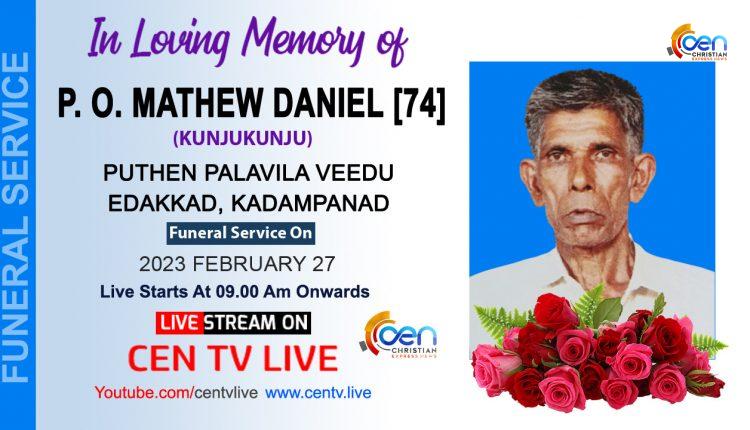 Live P. O. MATHEW DANIEL [Kunjukunju – 74] || || FUNERAL SERVICE || LIVE ON: 2023 FEB 27 On Feb 27, 2023 0 Share Share this on WhatsApp Share this on WhatsApp Continue Reading 0 Share WhatsAppFacebookTwitterViberPinterestEmail