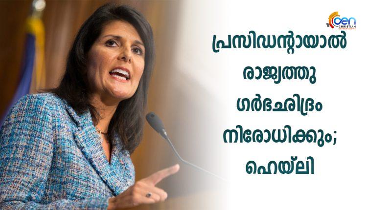 പ്രസിഡന്റായാൽ രാജ്യത്തു ഗർഭഛിദ്രം നിരോധിക്കുo; ഹെയ്ലി