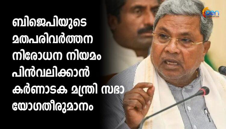 ബിജെപിയുടെ മതപരിവർത്തന നിരോധന നിയമം പിൻവലിക്കാൻ കർണാടക മന്ത്രി സഭാ യോഗതീരുമാനം