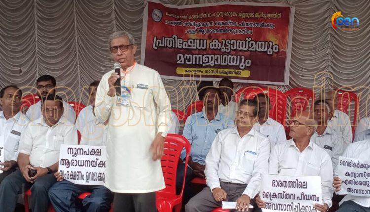 കോട്ടയം: മണിപ്പൂരിലും മറ്റ് സംസ്ഥാനങ്ങളിലും വർദ്ധിച്ചു വരുന്ന ക്രൈസ്തവ പീഡനങ്ങൾക്കെതിരെ പെന്തകോസ്തൽ കൗൺസിൽ ഓഫ് ഇന്ത്യ(പിസിഐ) കോട്ടയം ജില്ലായുടെ നേതൃത്വത്തിൽ നടത്തിയ പ്രതിക്ഷേധ കൂട്ടായ്മ കോട്ടയം ഗാന്ധി സ്ക്വയറിൽ നടന്നു. ജില്ല ജനറൽ സെക്രട്ടറി