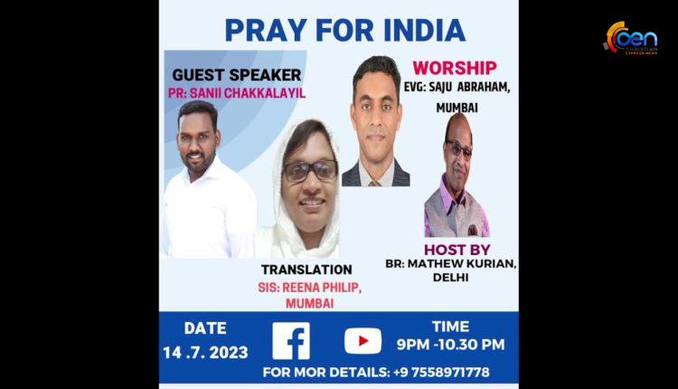 Pray for India(14-07-2023) | Worship: Evg. Saju Abraham | Speaker :Pr. Sanil Chakkalayil