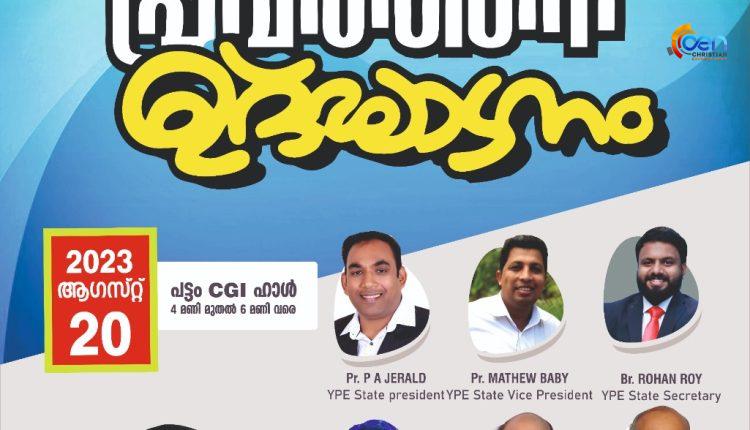 വൈ പി ഇ തിരുവനന്തപുരം സോണിന്റെ ഈ വർഷത്തെ പ്രവർത്തന ഉദ്ഘാടനം ഓഗസ്റ്റ് 20 ന് പട്ടം ദൈവസഭയിൽ വച്ച് നടക്കും.