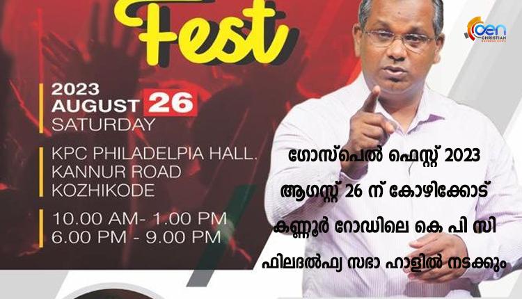 ഗോസ്പെൽ ഫെസ്റ്റ് 2023 ആഗസ്റ്റ് 26 ന് കോഴിക്കോട് കണ്ണൂർ റോഡിലെ കെ പി സി ഫിലദൽഫ്യ സഭാ ഹാളിൽ നടക്കും.