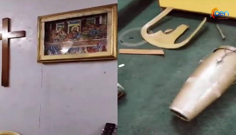 അതേസമയം, ഹിന്ദുക്കളെ മതം മാറ്റാന് ശ്രമം നടക്കുന്നത് കൊണ്ടാണ് ആക്രമണം നടത്തിയതെന്നാണ് സംഘ്പരിവാര് പ്രതികരിച്ചത്. ഹിന്ദു ഭൂരിപക്ഷപ്രദേശത്ത് എന്തിനാണ് ഹിന്ദുത്വ സംഘടന പ്രവര്ത്തകര് ചോദിച്ചു. സംഭവത്തില് ചര്ച്ച് മാനേജ്മെന്റിന്റെ പരാതിയില് കേസെടുത്തു. സംഭവത്തില് ഇതുവരെ ആരെയും അറസ്റ്റ് ചെയ്തിട്ടില്ല. സി.സി.ടി.വി ദൃശ്യങ്ങള് പരിശോധിച്ചുവരികയാണെന്ന് പോലീസ് പറഞ്ഞു.
