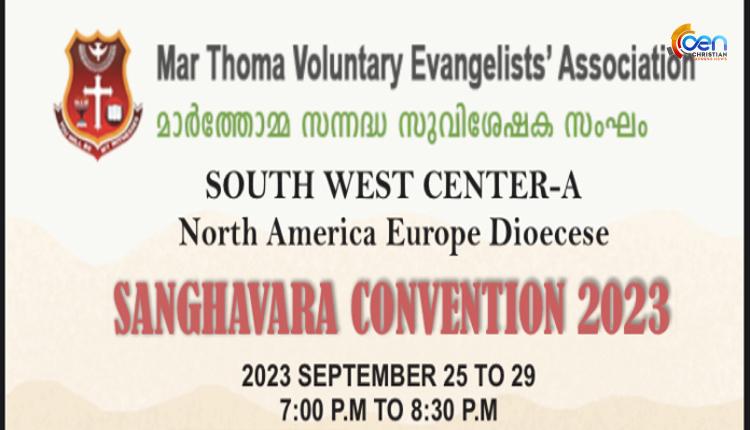 ഡാളസ് : നോർത്ത് അമേരിക്ക-യൂറോപ്പ് മാർത്തോമാ ഭദ്രാസനത്തിന്റ വോളണ്ടറി ഇവാഞ്ചലിസ്റ്റ്സ് അസോസിയേഷൻ സൗത്ത് വെസ്റ്റ് സെന്റർ- എ “സംഘവാര കൺവെൻഷൻ” സെപ്റ്റംബർ 25 മുതൽ ആരംഭിക്കുന്നു. മലങ്കര മാർത്തോമ്മാ സുറിയാനി സഭ ഒക്ടോബർ 1 മിഷൻ ഞായറാഴ്ചയായി എല്ലാ വർഷവും ആഘോഷിച്ചു വരുന്നു. ഈ വർഷം മാർത്തോമ്മാ വോളണ്ടറി ഇവാഞ്ചലിസ്റ്റ്സ് അസോസിയേഷൻ (MTVEA) ശതാബ്ദി വർഷമായി കൊണ്ടാടുവാൻ തീരുമാനിച്ചിരിക്കുന്നു. അതിൻറെ ഭാഗമായി നോർത്ത് അമേരിക്ക-യൂറോപ്പ് മാർത്തോമാ ഭദ്രാസനത്തിന്റ വോളണ്ടറി ഇവാഞ്ചലിസ്റ്റ്സ് അസോസിയേഷൻ സൗത്ത് വെസ്റ്റ് സെന്റർ- എ സെപ്റ്റംബർ 25 മുതൽ 29 വരെ (രാത്രി 7:0 0 pm – 8:30pm CST) ‘ സംഘവാര കൺവെൻഷൻ ആഴ്ചയായി’ നടത്തപ്പെടുന്നു .