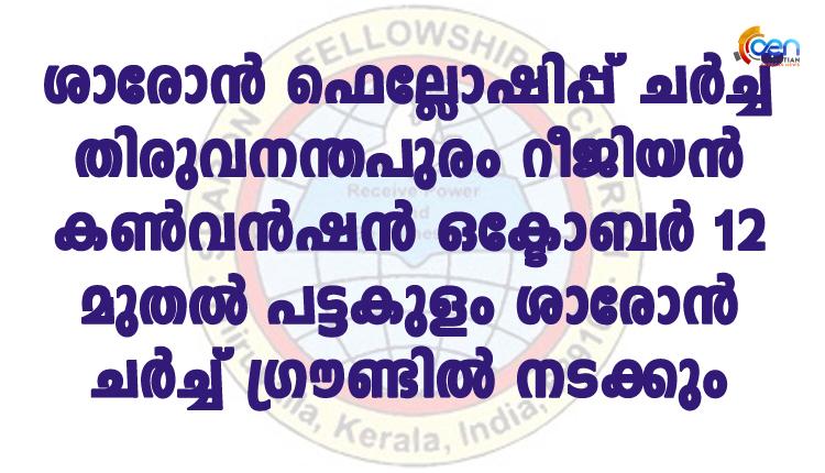 ശാരോൻ ഫെല്ലോഷിപ്പ് ചർച്ച് തിരുവനന്തപുരം റീജിയൻ കൺവൻഷൻ ഒക്ടോബർ 12 മുതൽ പട്ടകുളം ശാരോൻ ചർച്ച് ഗ്രൗണ്ടിൽ നടക്കും.