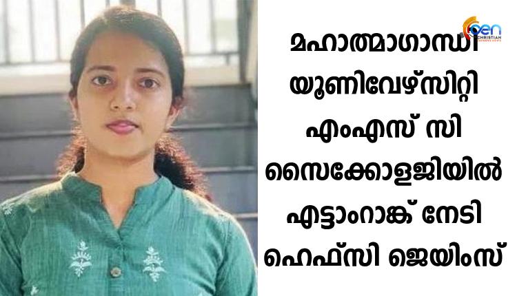 മഹാത്മാഗാന്ധി യൂണിവേഴ്സിറ്റി എംഎസ് സി സൈക്കോളജിയിൽ എട്ടാംറാങ്ക് നേ ടി ഹെഫ്സി ജെയിംസ് .