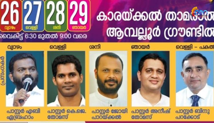 തിരുവല്ല: വിവിധ സഭകളുടെ സഹകരണത്തോടെയുള്ള വെസ്റ്റ് യുപിഎഫ് ഐക്യ കൺവൻഷൻ ഇന്നു (വ്യാഴം) മുതൽ 29 (ഞായർ) വരെ കാരയ്ക്കൽ താമരാൽ ആമ്പല്ലൂർ ഗ്രൗണ്ടിൽ നടക്കും. ഇന്നു 6.30ന് യുപിഎഫ് പ്രസിഡൻ്റ് പാസ്റ്റർ സജി ചാക്കോ ഉദ്ഘാടനം ചെയ്യും. കൺവൻഷൻ ചെയർമാൻ പാസ്റ്റർ കെ.ബെന്നി അധ്യക്ഷത വഹിക്കും. പാസ്റ്റർ എബി എബ്രഹാം വചനപ്രഭാഷണം നടത്തും. സാം പൂവച്ചലിൻ്റെ നേതൃത്വത്തിൽ യു.പി.എഫ് ക്വയർ ഗാനശുശ്രൂഷ നടത്തും.