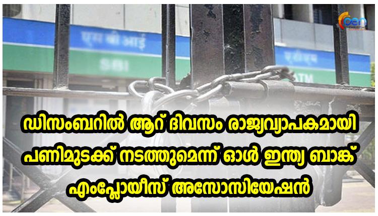 ഡിസംബറിൽ ആറ് ദിവസം രാജ്യവ്യാപകമായി പണിമുടക്ക് നടത്തുമെന്ന് ഓൾ ഇന്ത്യ ബാങ്ക് എംപ്ലോയീസ് അസോസിയേഷൻ