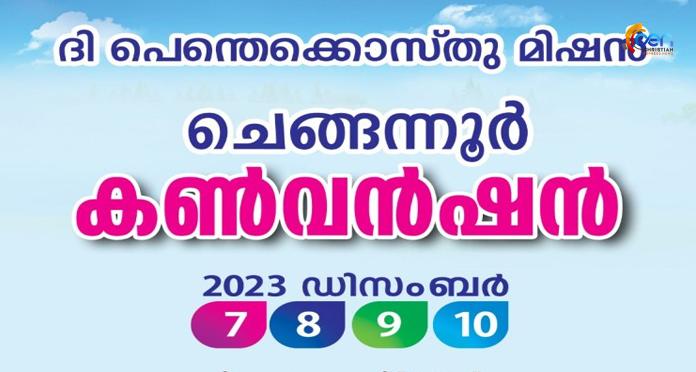 ചെങ്ങന്നൂർ: ദി പെന്തെക്കോസ്ത് മിഷൻ തിരുവല്ല സെന്ററിന്റെ പ്രാദേശിക സഭയായ ചെങ്ങന്നൂർ റ്റി.പി.എം വാർഷിക കൺവൻഷനും ദൈവീക രോഗശാന്തി ശുശ്രൂഷയും ഡിസംബർ 7 മുതൽ 10 വരെ പുത്തൻവീട്ടിൽപടി പഴവന ഗ്രൗണ്ടിൽ നടക്കും. സഭയുടെ പ്രധാന ശുശ്രൂഷകർ പ്രസംഗിക്കും. മിഷൻ പ്രവർത്തകർ കൺവെൻഷൻ ഗാനങ്ങൾ ആലപിക്കും.