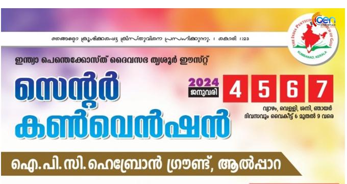ഐപിസി തൃശൂർ ഈസ്റ്റ് സെന്റർ കൺവൻഷൻ ജനുവരി 4 മുതൽ