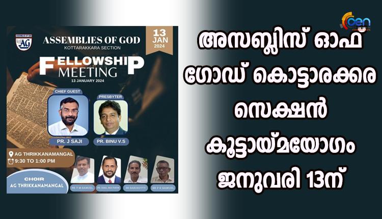 അസബ്ലിസ് ഓഫ് ഗോഡ് കൊട്ടാരക്കര സെക്ഷൻ കൂട്ടായ്മയോഗം ജനുവരി 13ന്