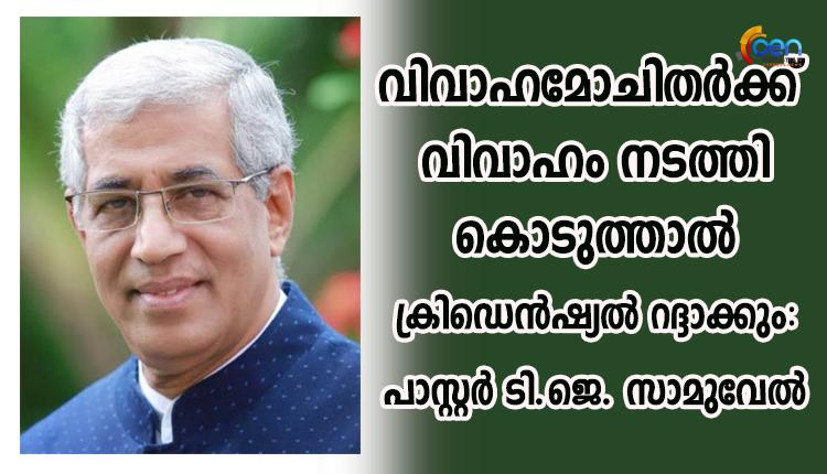 വിവാഹമോചിതർക്ക് വിവാഹം നടത്തി കൊടുത്താൽ ക്രിഡെൻഷ്യൽ റദ്ദാക്കും: പാസ്റ്റർ ടി.ജെ. സാമുവേൽ