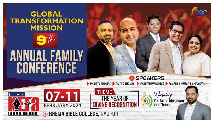 നാഗ്പൂർ : ഗ്ലോബൽ ട്രാൻസ്ഫോമേഷൻ മിഷൻ 9 മത് വാർഷിക കോൺഫറൻസ് ഫെബ്രുവരി 7 മുതൽ 11 വരെ നാഗ്പൂർ റേഹമ ബൈബിൾ കോളേജിൽ നടക്കും. ദൈവീക അംഗീകാരത്തിൻ്റെ വർഷം -The Year of Divine Recognition – എന്നതാണ് കോൺഫറൻസിൻ്റെ ചിന്താവിഷയം.